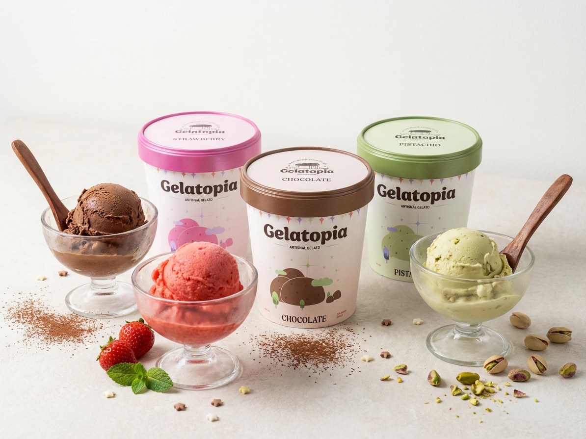 Gelatopia, Gelato brand, logo design